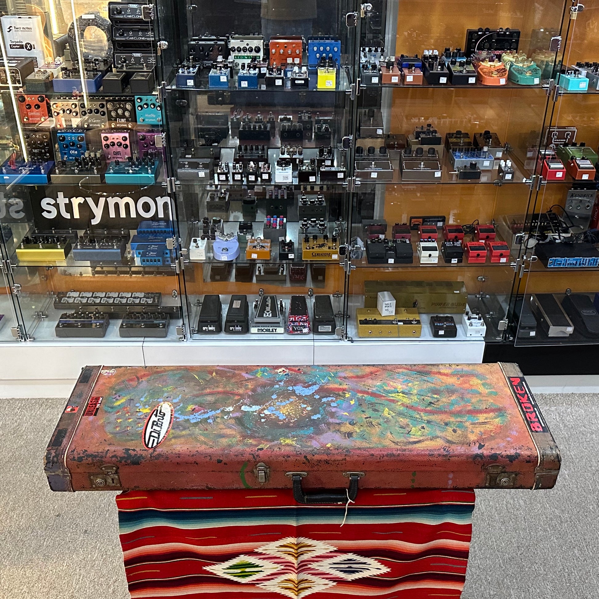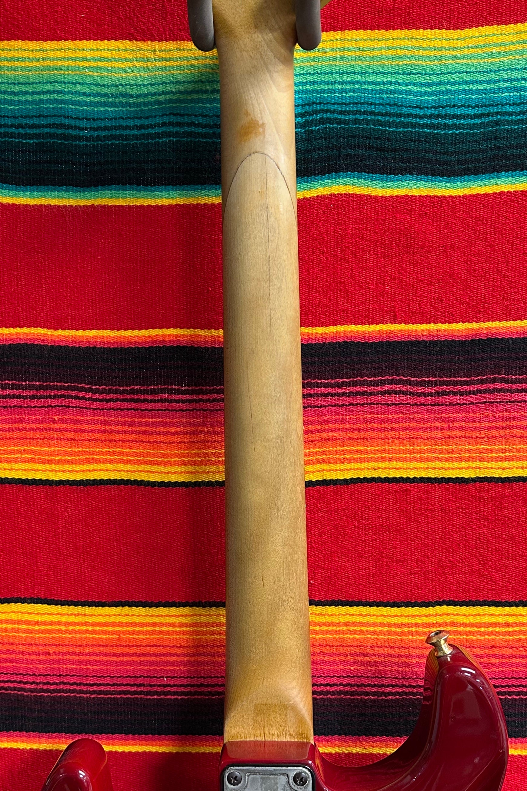 1985 Charvel San Dimas HSS in Red Burst. Alder Body. Maple Neck with Low Profile Shape. Rosewood Fretboard. 1 11/16" Nut Width. 10"-14" Compound Radius. 25.5" Scale Length. Seymour Duncan HSS Pickups. Master Volume with 1x Each Pickup On/Off Switch. Comes with Painted HSC with 1 Broken Latch.