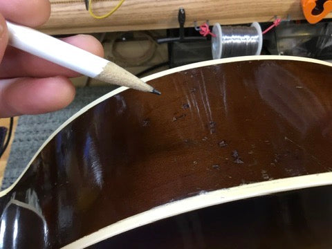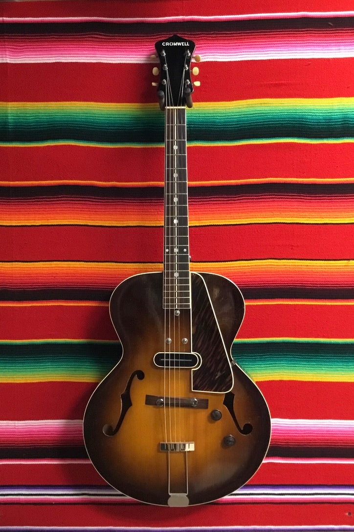 1937 Cromwell EG5 in Sunburst. Made by Gibson for New York Band Instrument Company, NYC. Solid Carved Spruce Top. Arched Maple Back and Sides. Mahogany Neck with Large V-Shape. Bound Brazilian Rosewood Fingerboard with Center Stripe Inlay. Grover Sta-Tite Tuners. 1 3/4" Nut Width. 12" Fretboard Radius. 24.75" Scale Length. 1x Charlie Christian-style Single Coil Pickup with Volume and Tone Controls. New Wiring Harness Added. Brazilian Rosewood Adjustable Bridge. Repaired Top Crack. Comes with OHSC