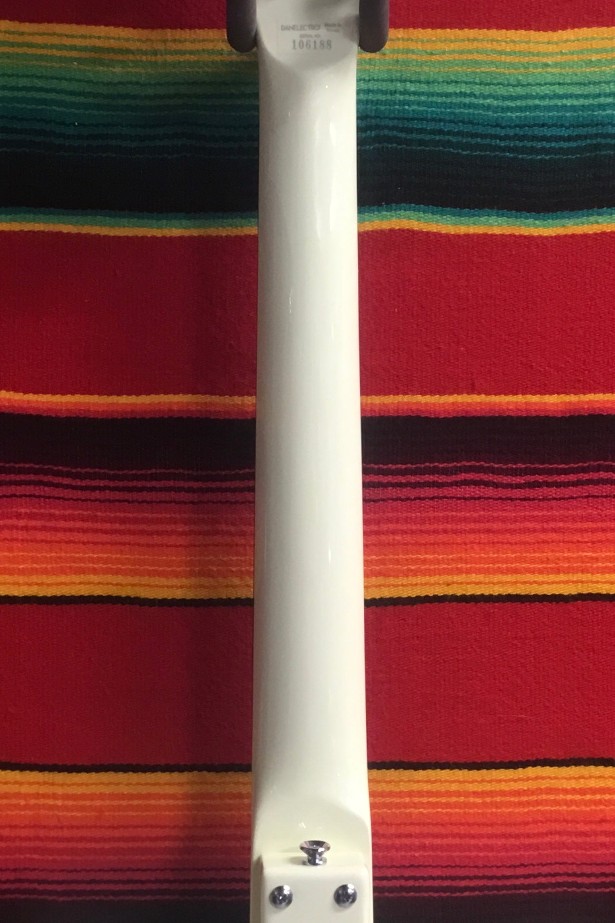 Danelectro '59 Vintage 12 String in Vintage White. Semi-hollow Spruce Body with Hardboard Top and Back. Maple Neck. Pau Ferro Fretboard. 1.78" Aluminum Nut. 14" Fretboard Radius. 25" Scale Length. 2x Danelectro '56 Lipstick Single Coil Pickups with Master Volume and Tone Controls. 12 Saddle Adjustable Bridge. No Bag or Case.