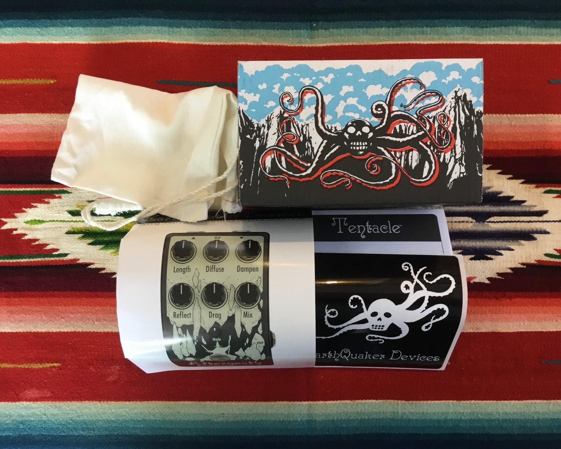 The Tentacle is a classic analog octave up effect. It is the very same octave from our beloved Hoof Reaper pedal. We got so many requests to make this a stand-alone unit that we just had to make it a reality. You can now add an excellent, swelling octave up to anything your heart desires! Pair it with your favorite fuzz, strap on a headband and unleash your inner Jammy Hendrix. Put it in front of another octave up and blow your amps mind. Throw it in the effects loop of a delay and marvel at what happens (then tell us, we’d like to know too). What’s better? It has no controls! Nothing to worry about at all here, just hit the switch and go for it. The Tentacle is an analog octave up, the effect will become much more pronounced when using your neck pickup and playing above the 12th fret.