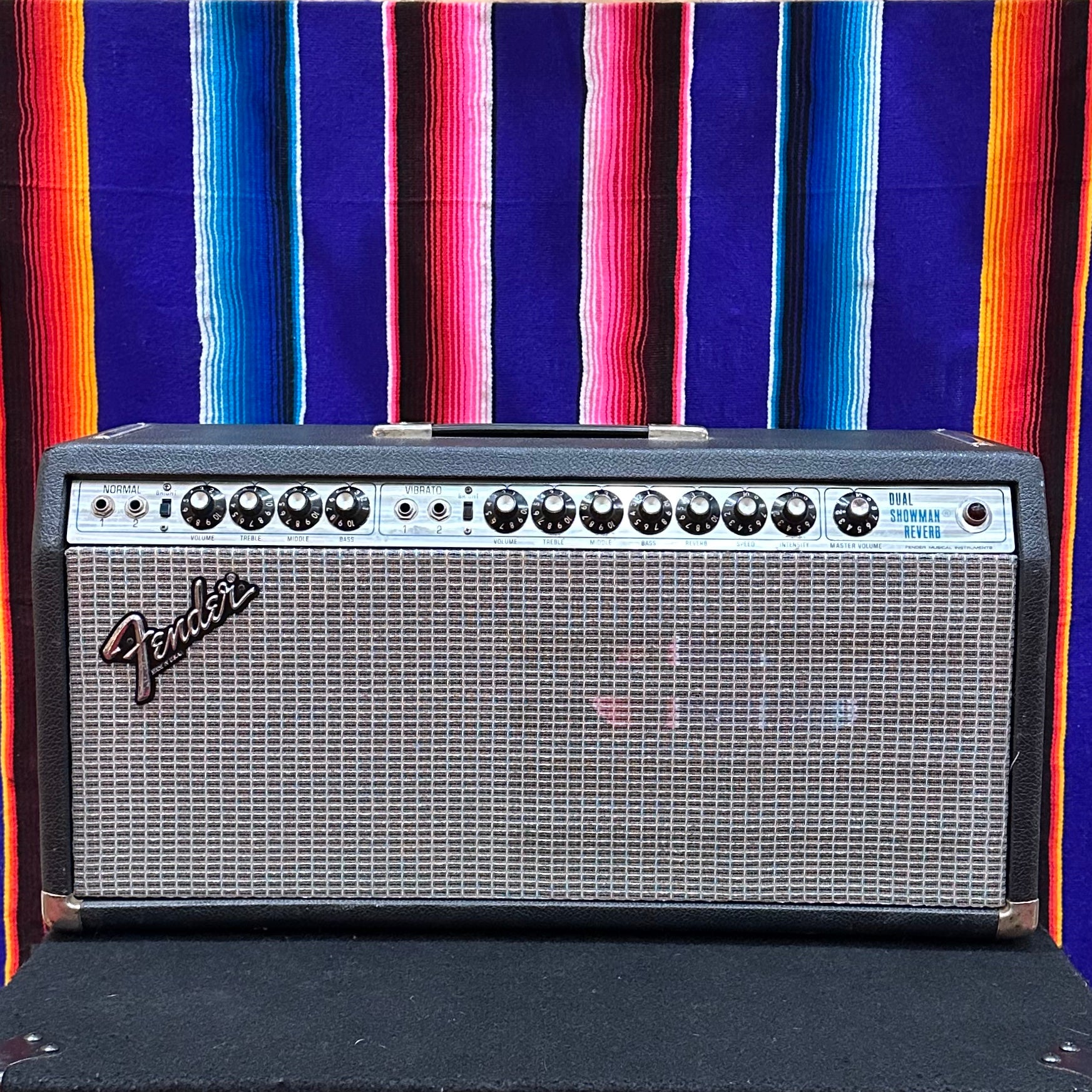 1978 Fender Dual Showman Reverb. 135 Watts with 4x 6L6, 4x 12AX7, and 2x 12AT7. Normal Channel with Bright Switch and Volume, Treble, Middle, and Bass Controls. Vibrato Channel with Bright Switch and Volume, Treble, Middle, Bass, Reverb, Speed, and Intensity Controls. Master Volume Control. Recently Serviced with New Coupling and F&T Filter Caps, and Power Supply and Screen Grid Resistors. Original Tested, Matched,and Biased RCA 6L6GC Power Tubes. Comes with Footswitch