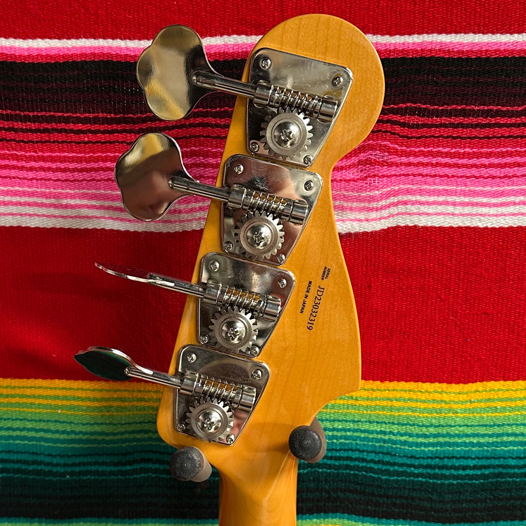 2023 Fender J Precision Bass in Black Gold. Made in Japan. Ash Body. 1-piece Maple Neck with J Custom Soft V Profile. Vintage Style Tuners. 1.65" Bone Nut. 7.25" Fretboard Radius. 34" Scale Length. 1x Fender J Custom P-Bass Pickup with Master Volume and Master Tone Controls. 4 Saddle Vintage Style Bridge. Comes with Bag.