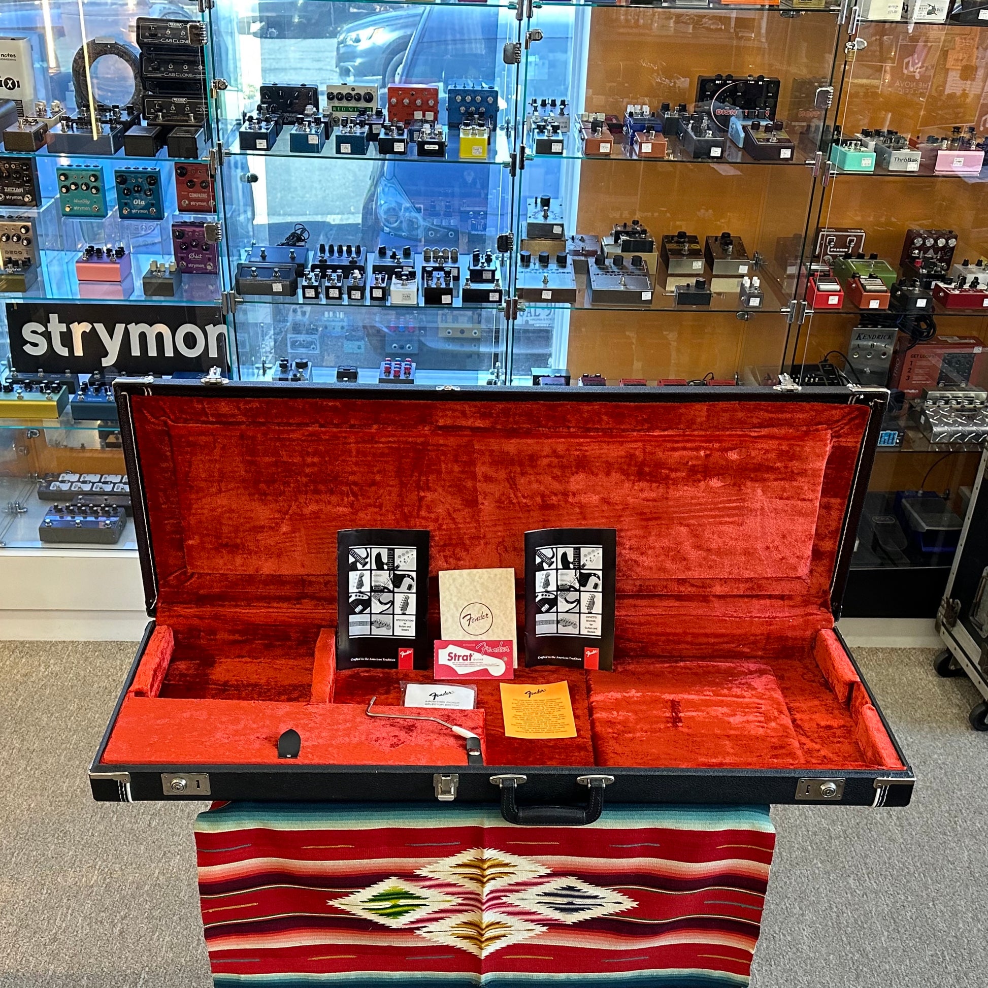 1997 Fender Jimi Hendrix Stratocaster in Olympic White. Alder Body. Maple Neck with Large Headstock and Special Neck Profile. Maple Cap Fretboard. Schaller "F" Stamped Tuners. Special Hendrix Silhouette 4-bolt Neck Plate. 1.650" Nut Width. 7.25" Fretboard Radius. 25.5" Scale Length. 3x Fender Reverse Staggered Vintage '69 Stratocaster Pickups with Master Volume Control and 2x Tone Controls. 3-way Selector Switch. Vintage Synchronized Tremolo with Stamped Saddles. Comes with OHSC, Papers, and Extras