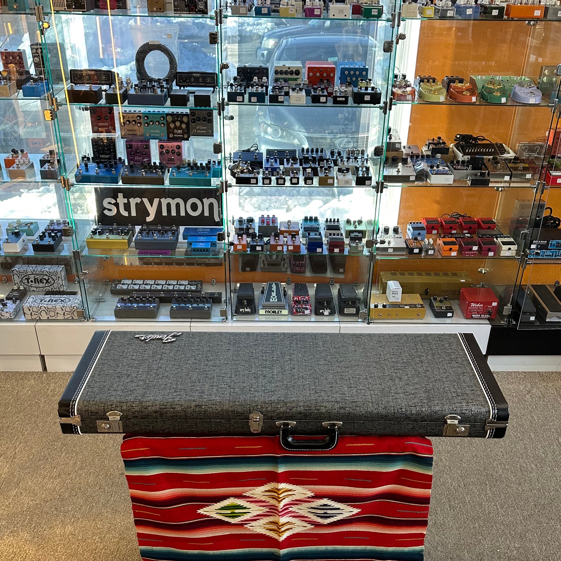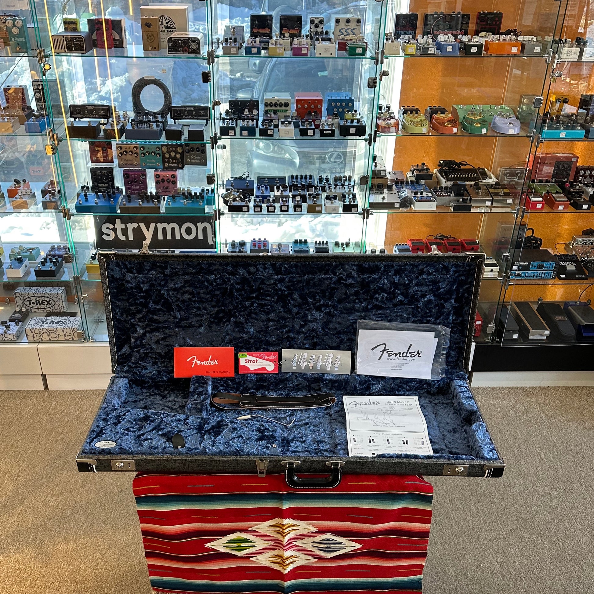 2014 Fender John Mayer Stratocaster in 3-Color Sunburst. Alder Body. Maple Neck with Thick C Profile. African Rosewood Fretboard with Ivory Dot Inlays. Fender Vintage-style Tuners. 1.650" Nut Width. 9.5" Fretboard Radius. 25.5" Scale Length. 3x Fender "Big Dipper" Single Coil Stratocaster Pickups with Master Volume Control and 2x Tone Controls. 5-way Selector Switch. 6 Saddle American Vintage Synchronized Tremolo. Comes with OHSC, Papers, and Extras
