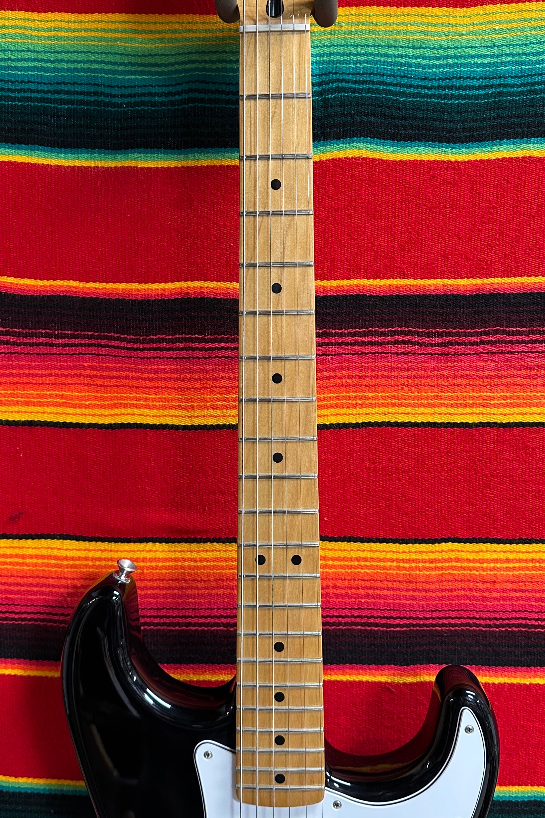 2015 Fender Jimi Hendrix Stratocaster. Made In Mexico. Black Finish. Alder Body. Maple Neck with C Profile. 1.65" Nut Width. 9.5" Fretboard Radius. 25.5" Scale Length. Stratocaster Pickups with Master Volume and Two Tone Controls. 5-way Selector Switch. Tremolo Bridge. Comes with Bag.
