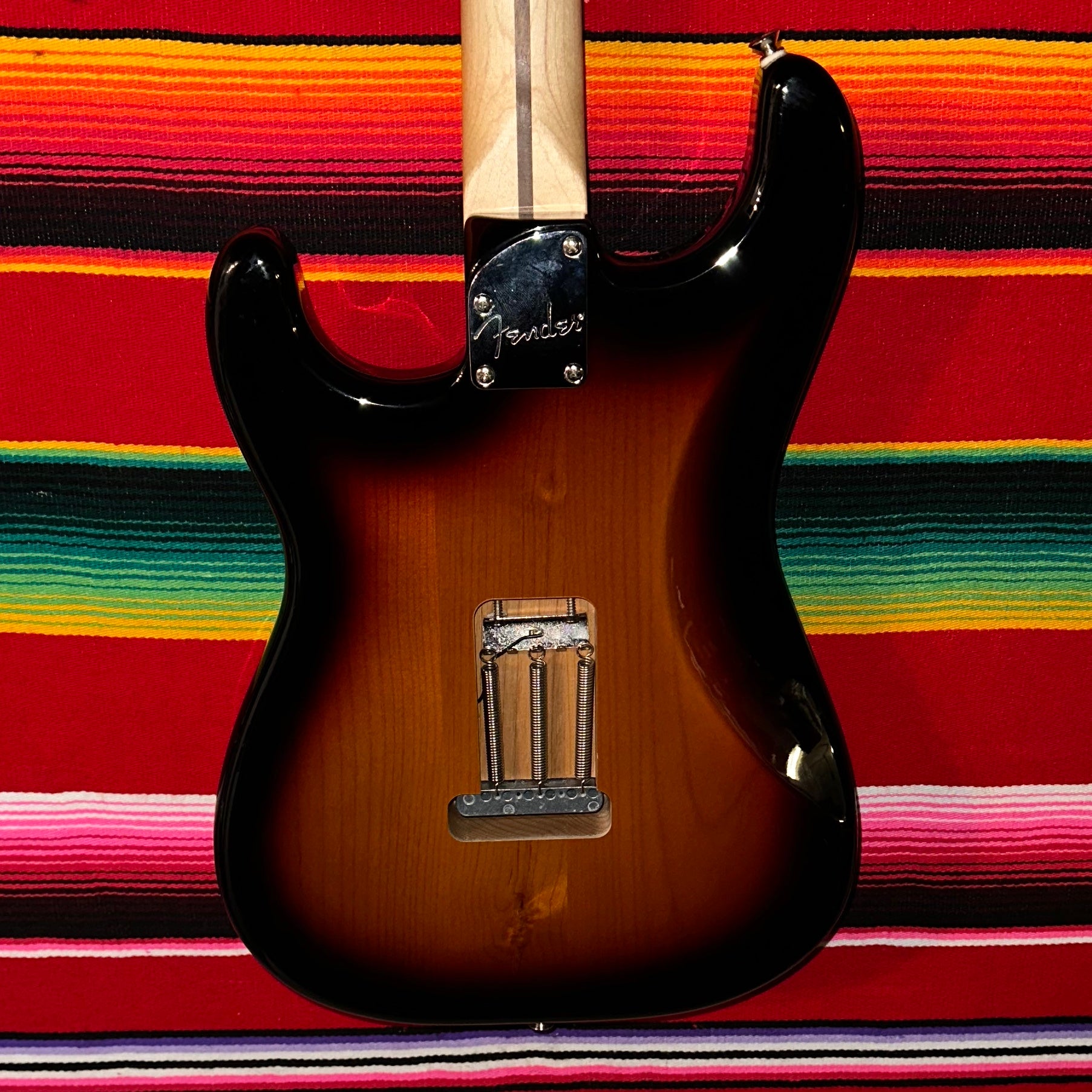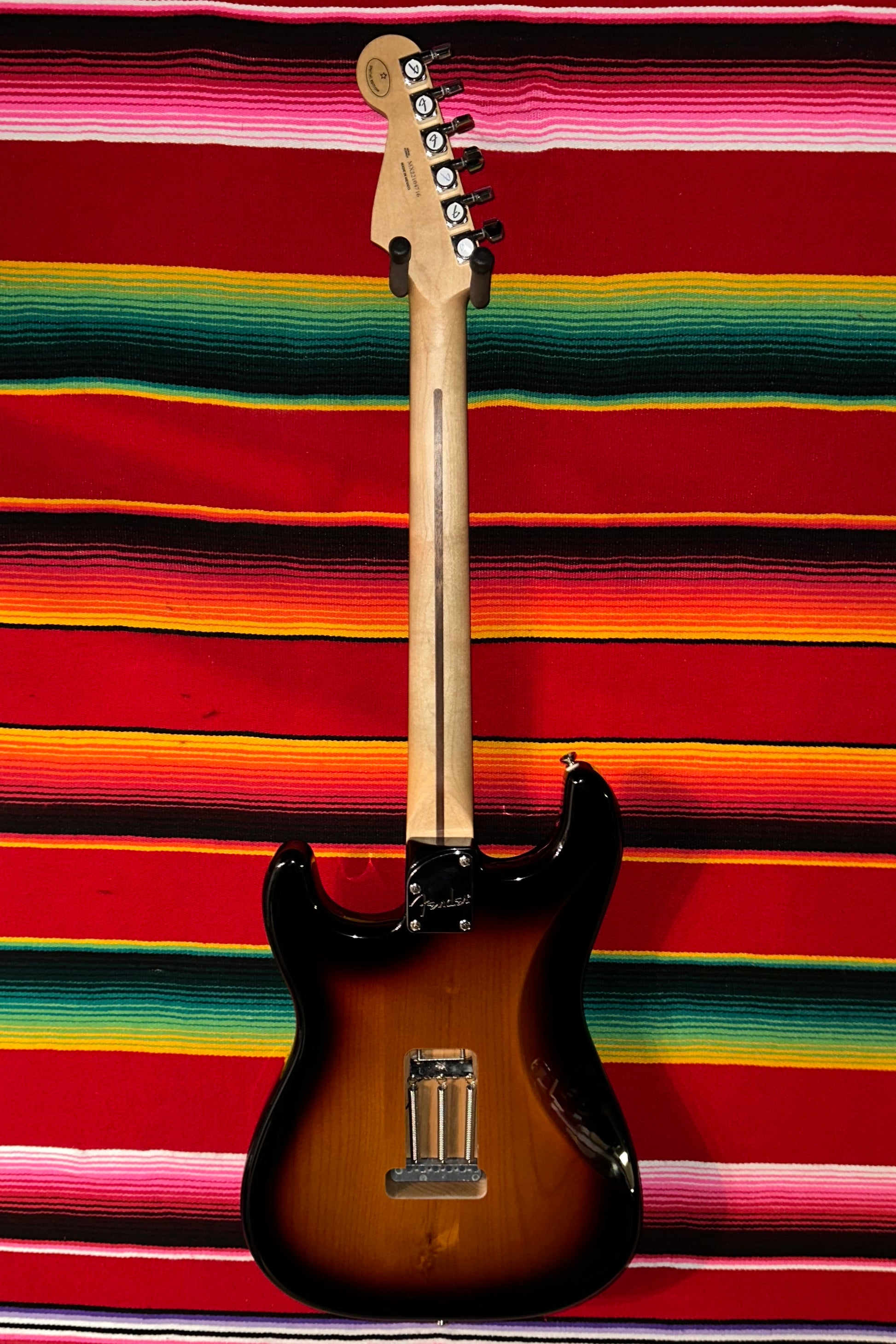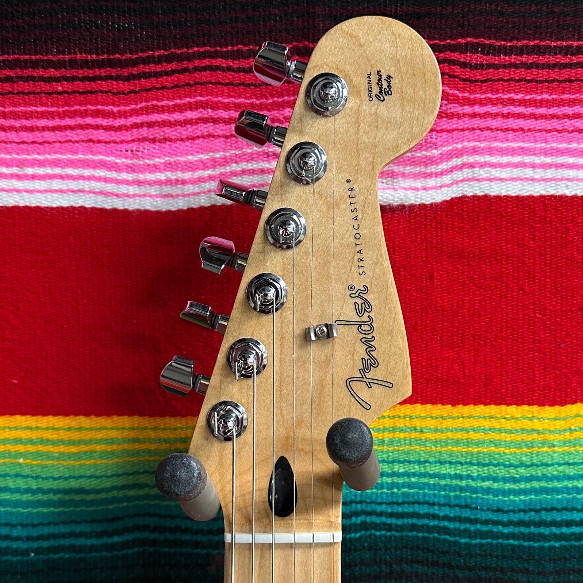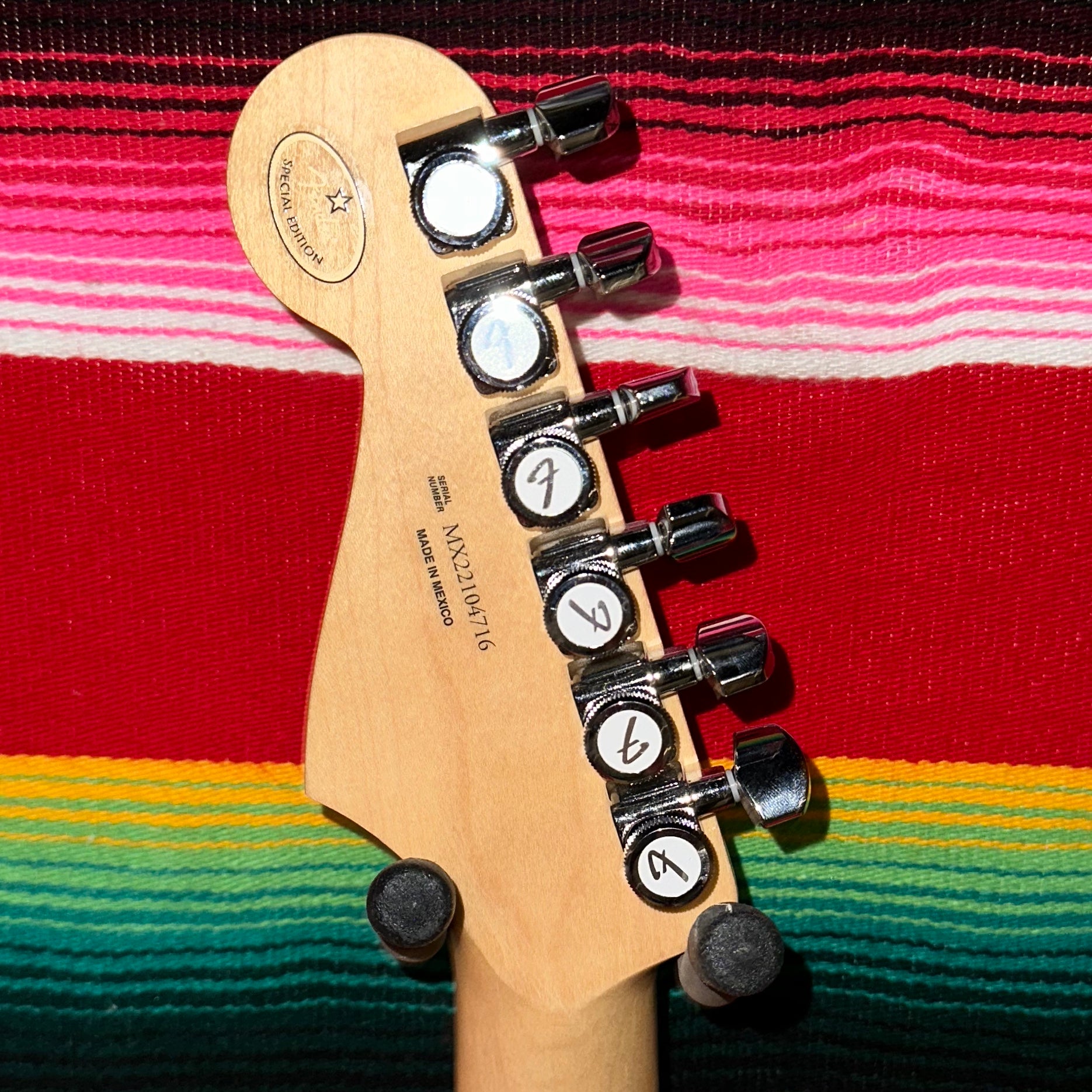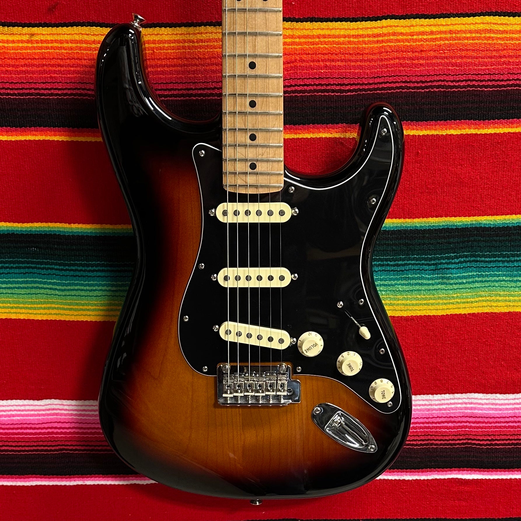 2022 Fender MIM Limited Edition Player Stratocaster in Sunburst. New Aftermarket Alder Body. 1-piece Maple Neck with Modern C Profile. Tuners Upgraded to Fender American Deluxe Locking Tuners. 1.65" Nut Width. 9.5" Fretboard Radius. 25.5" Scale Length. Pickups Upgraded to 3x Fender Yosemite Stratocaster Single Coil Pickups. Master Volume Control and 2x Tone Controls. 5-Way Selector Switch. 2-Point Synchronized Tremolo. Comes with Bag