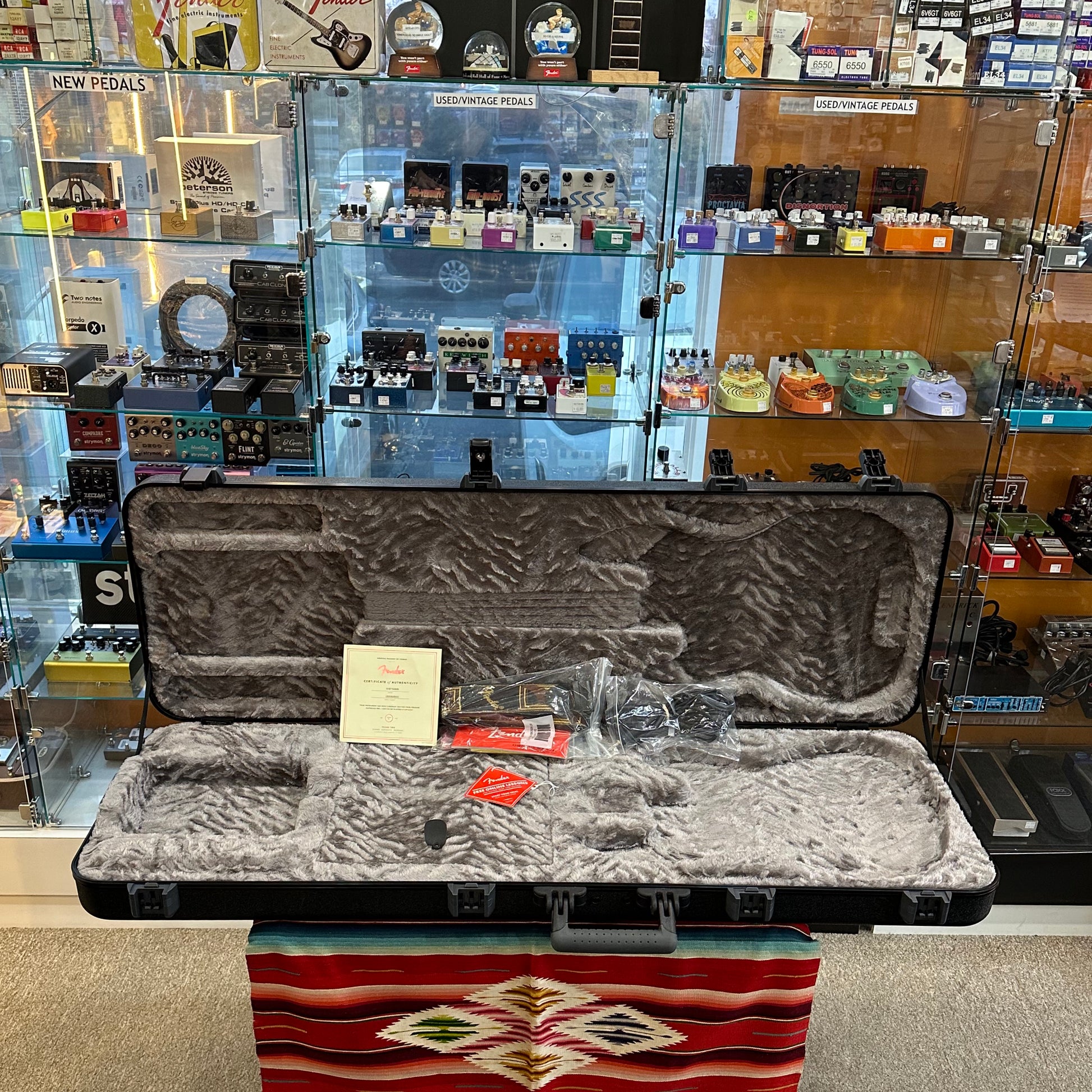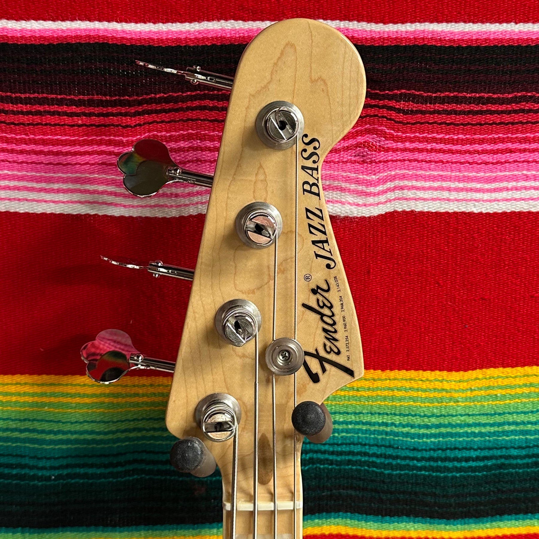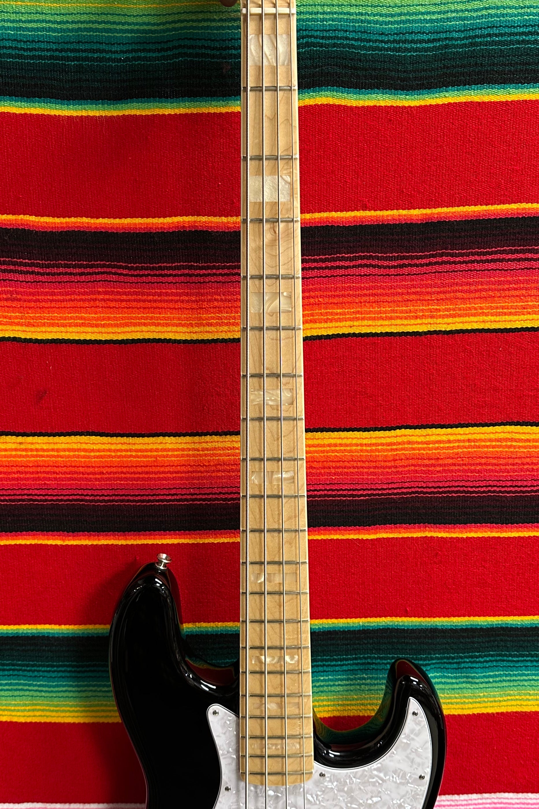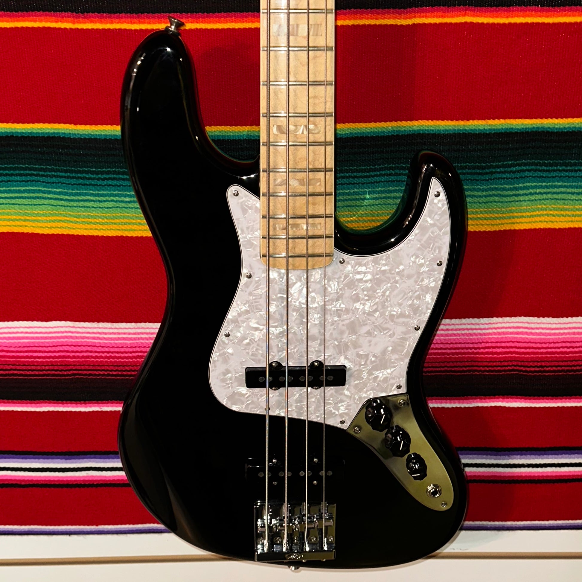 2023 Fender USA Geddy Lee Jazz Bass in Black. Alder Body with Gloss Urethane Finish. 1-piece Maple Neck with White Pearloid Block Inlays and Custom Thick C Profile. American Vintage Reverse Open Gear Tuners. 1.5" Bone Nut. 9.5" Fretboard Radius. 34" Scale Length. 2x Fender Custom Voiced Vintage '70s Geddy Lee Single Coil Jazz Bass Pickups with 2x Volume Controls and Master Tone Control. Fender Geddy Lee High Mass Bridge. Comes with OHSC