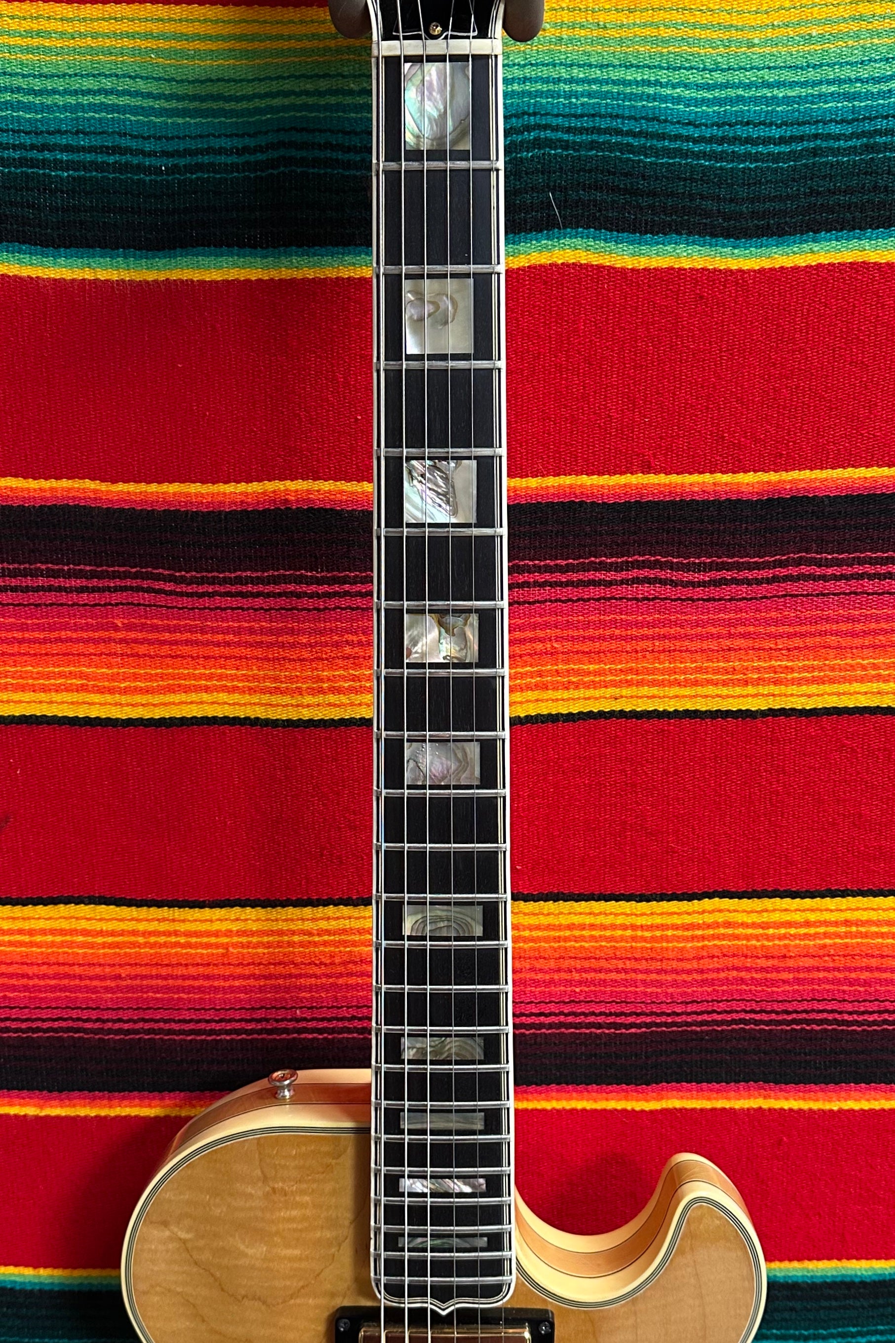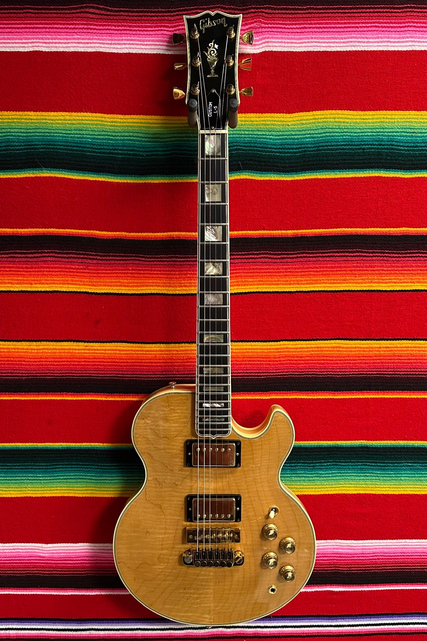 1978 Gibson Custom L-5S in Natural. Carved 2-Piece Flamed Maple Top with Multi-ply Binding. Carved 2-Piece Flamed Maple Body with Flamed Maple Back Plate. 5-Piece Laminated Maple/Mahogany Neck with Multi-ply Headstock Binding, Abalone Flower Pot Inlay, Volute and C Profile. Bound Ebony Fretboard with Abalone Block Inlays. Gold Hardware. 1 11/16" Bone Nut. 12" Fretboard Radius. 24.75" Scale Length. 2x Gibson Bill Lawrence-designed "Tar Back" Super Humbucking Pickups with Individual Volume and Tone Controls. 3-way Selector Switch. Gibson/Schaller "Harmonica" Tune-O-Matic Bridge and TP-6 Fine Tuning Tailpiece. Some Resoldering and Possibly 1x Changed Capicitor Otherwise 100% Original. Comes with OHSC