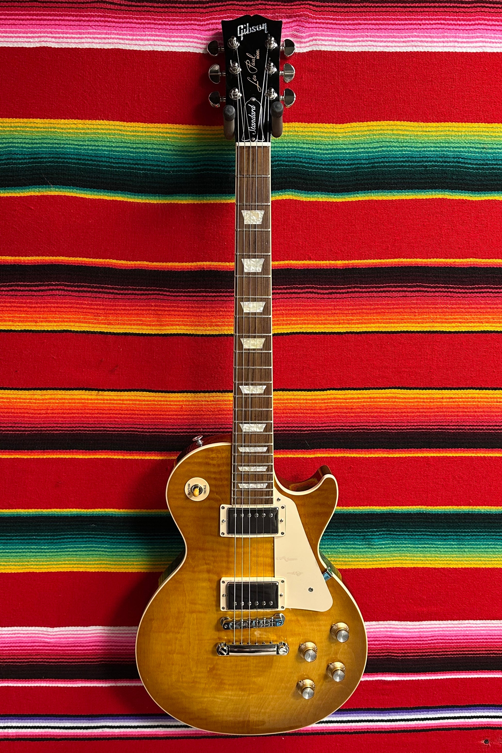 2024 Gibson Les Paul Standard '60s in Unburst. Carved 2-piece AA Figured Maple Top. Solid Mahogany Body. Mahogany Neck with '60s SlimTaper Profile. Bound Rosewood Fretboard with Acrylic Trapazoid Inlays. Grover Rotomatic Tuners with Kidney Buttons. 1.69" Nut Width. 12" Fretboard Radius. 24.75" Scale Length. 2x Gibson '60s Burstbucker Humbucking Pickups with Individual Volume and Tone Controls. Hand-wired Electronics with Orange Drop Capacitors 3-way Selector Switch. Nickel ABR-1 Tune-O-Matic Bridge and Aluminum Stop Tailpiece. Comes with OHSC