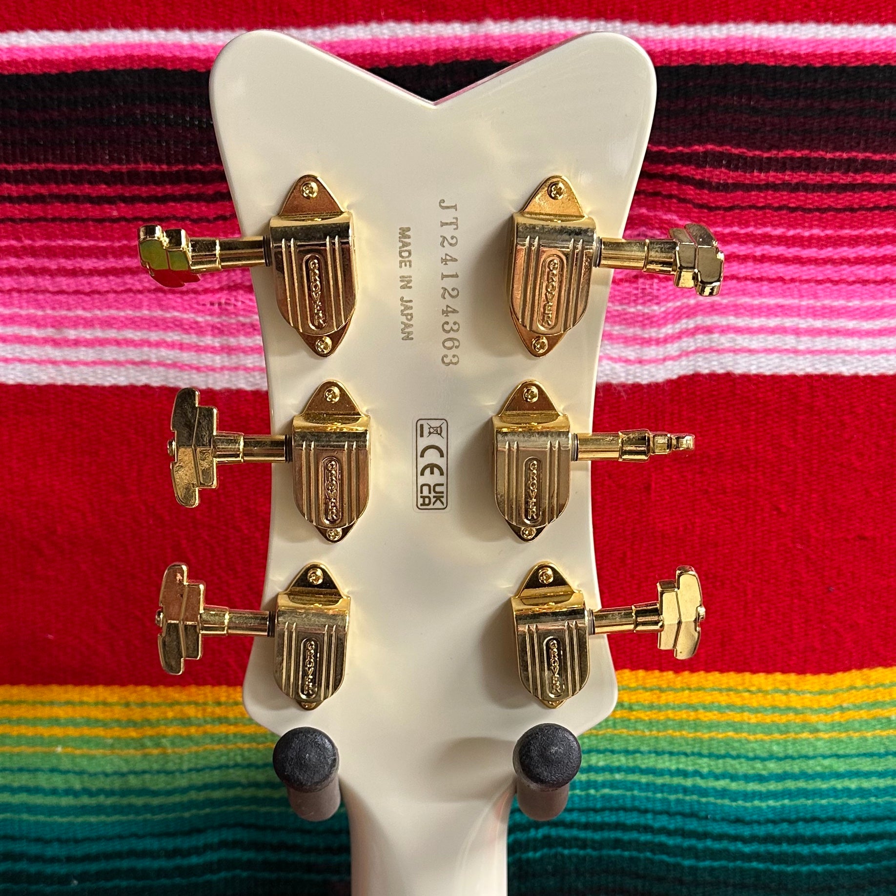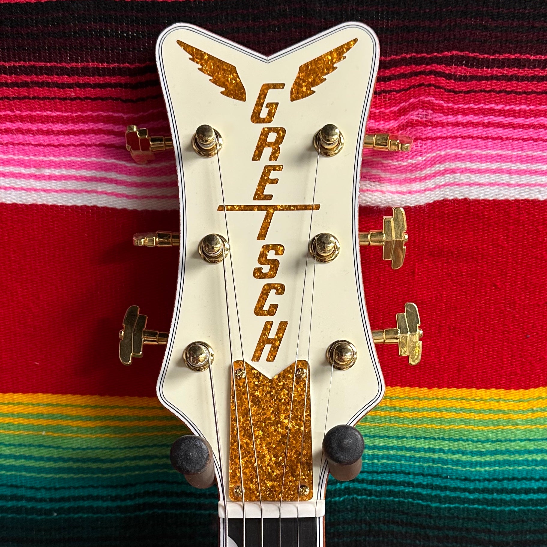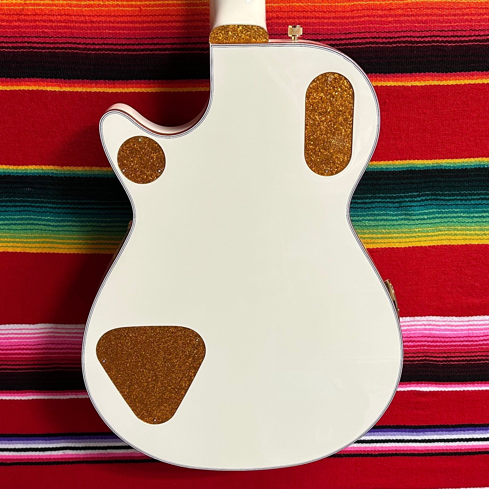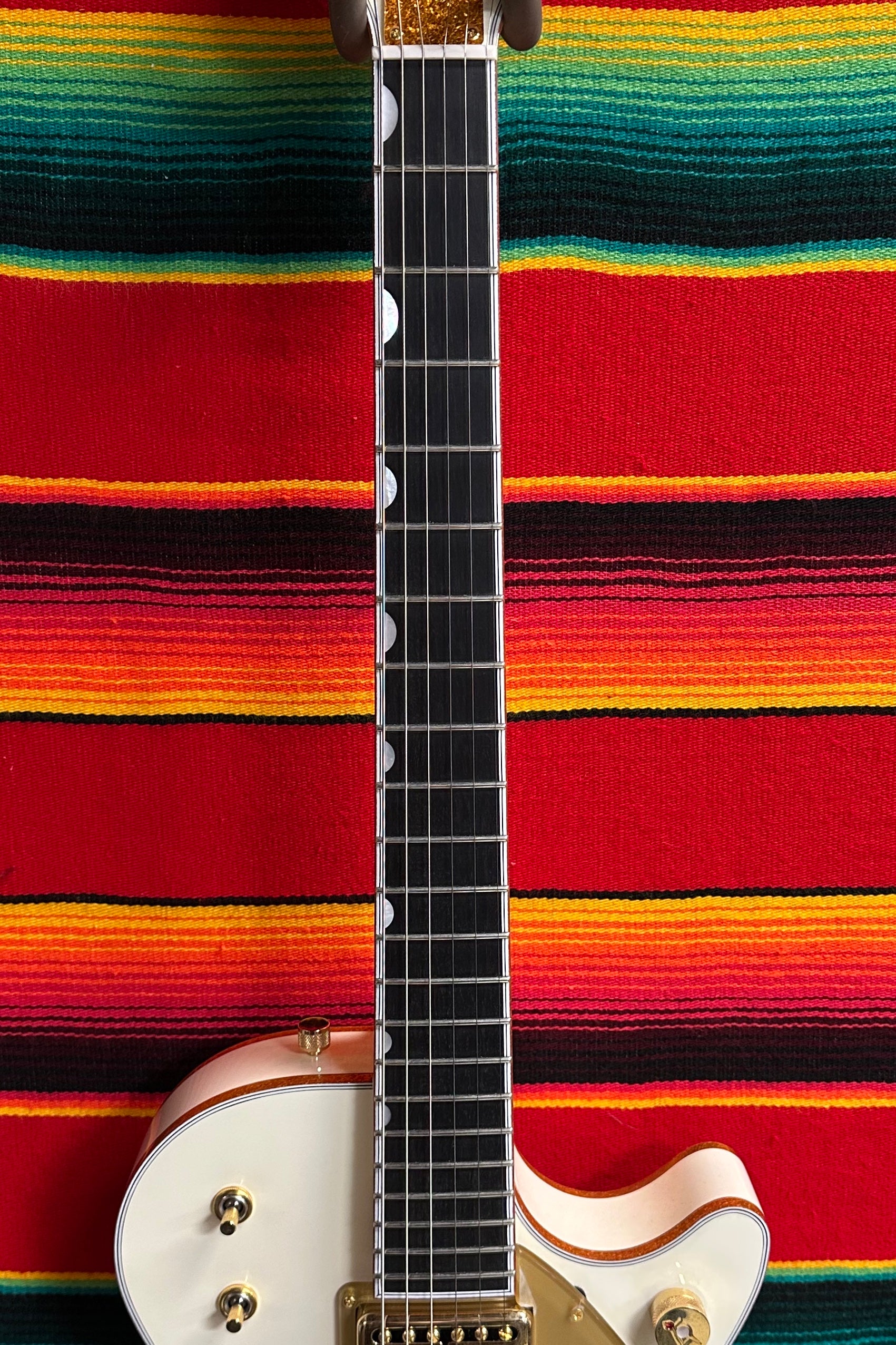 2024 Gretsch G6134T-58 Vintage Select '58 Penguin with Bigsby in Vintage White. Arched Laminated Maple Top. Chambered Mahogany Body. Gold Sparkle Body Binding. Gloss Nitrocellolous Lacquer Finish. Mahogany Neck with Standard U Profile. Gold Sparkle Bound Ebony Fretboard with Pearloid Neo-Classic Thumbnail Inlays. Gold Grover Imperial Tuners. 1.6875" Bone Nut. 12" Fretboard Radius. 24.6" Scale Length. 2x TV Jones Filter'Tron Classic Humbucking Pickups with Individual Volume Controls and Master Volume Controls. 3-Position Tone Switch and 3-Way Pickup Selector Switch. Space Control Bridge and Bigsby B3GB Tailpiece. Comes with Gretsch HSC