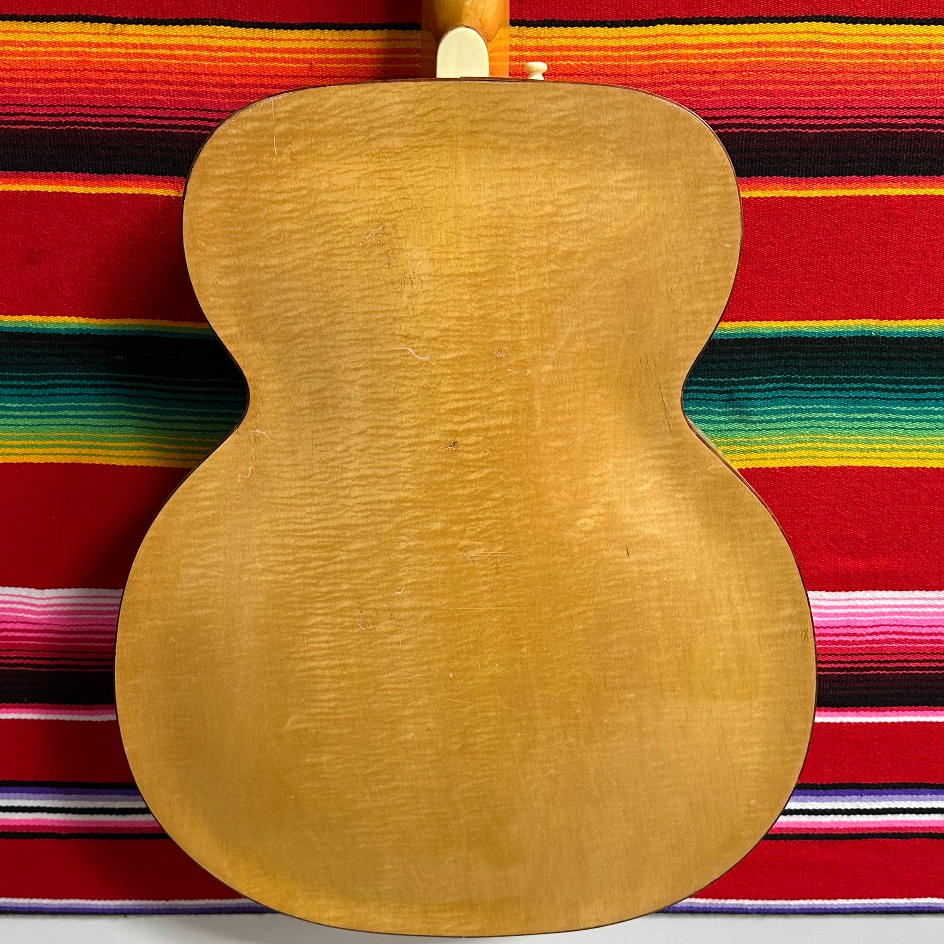 1940s Kay Model K-42 in Natural. 17" Super Auditorium Body. Arched Laminated Spruce Top. Arched Laminated Maple Back and Laminated Maple Sides. Maple Neck with Large C Profile. Brazilian Rosewood Fretboard. Added DeArmond Gold Foil Pickup Dates to 1952. Changed Tuners and Tailpiece. Brazilian Rosewood Bridge. No Bag or Case.