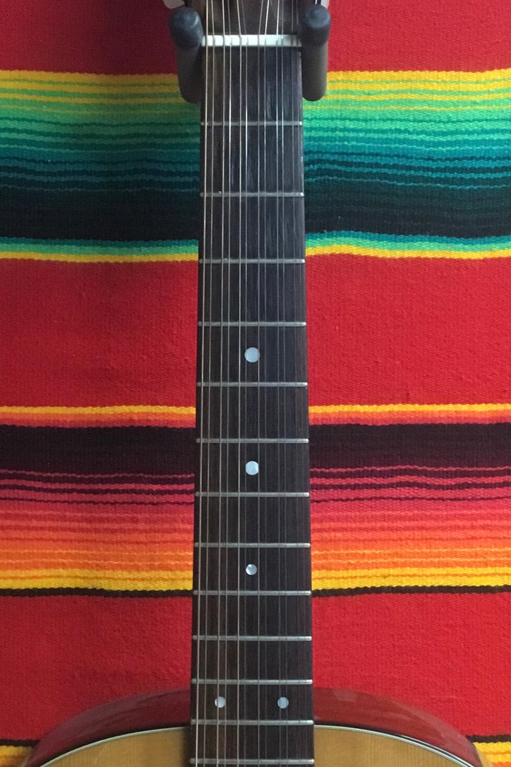 1972 Martin D12-20. 12-Frets to the Body. Sitka Spruce Top. Mahogany Back and Sides. Mahogany Neck with C Shape. 6 on a Plate Tuners with Pearl Buttons. Unbound Indian Rosewood Fretboard with Pearl Dot Inlays. 1 7/8" Nut Width. 16" Fretboard Radius. 24.9" Scale Length. Indian Rosewood Belly Bridge. No Case or Bag.