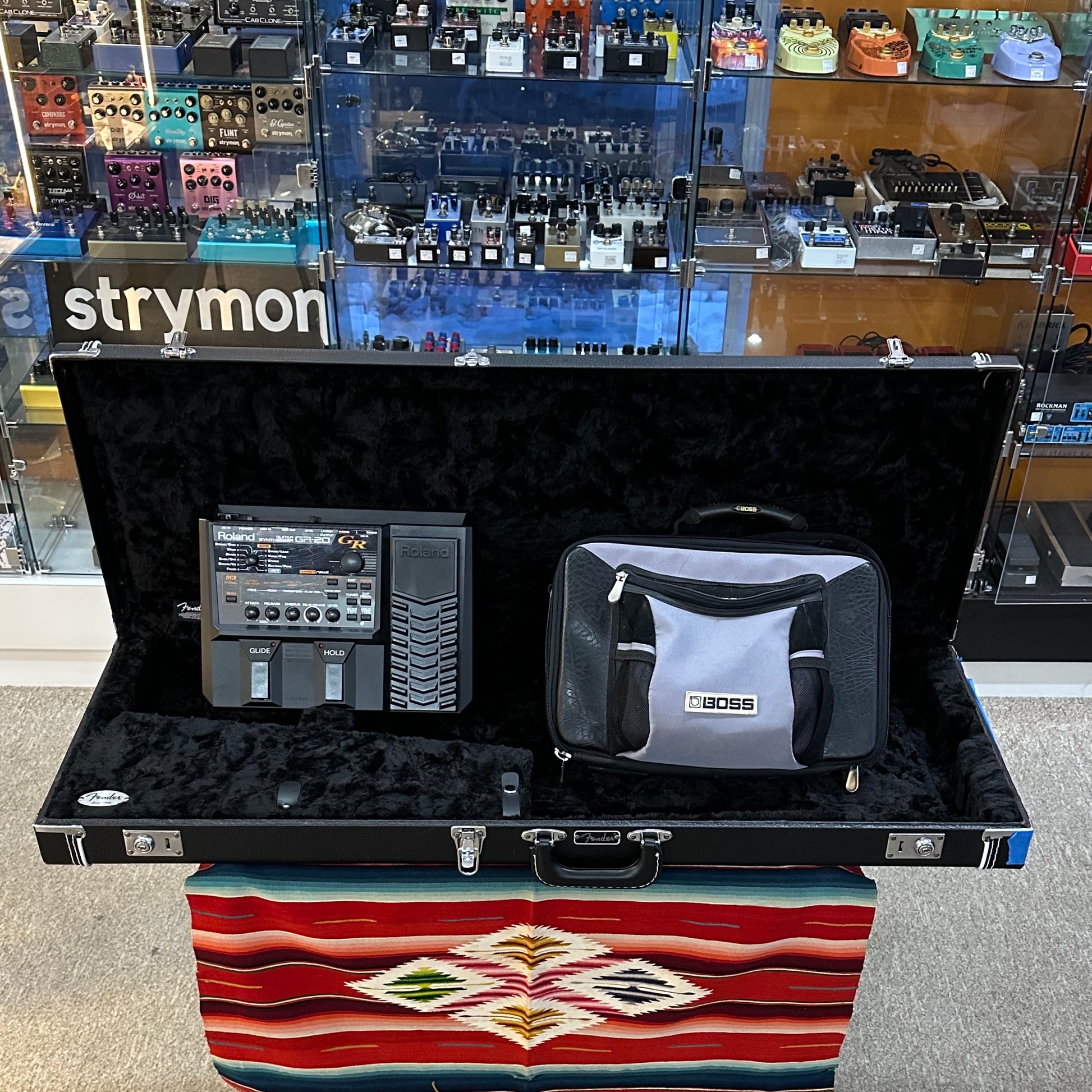 Parts Fender Roland Ready Stratocaster in Surf Green with "Matching" Headstock. Ash Roland Ready HSS Body(Possibly Mid 90's Series) with Roland GK2 Pickup. Maple Neck with C Shape from 2009 Fender Special Ed. American Standard Strat. 1 11/16" Nut Width. 9.5" Fretboard Radius. 25.5" Scale Length. 2x Seymour Duncan Classic Stack Plus Strat Neck and Middle Pickups, and 1x Seymour Duncan Trembucker Pearly Gates Bridge Humbucker. Changed Knobs, Switch, Saddles, Pickups and 1x Pot. Comes with Fender HSC. Comes with Roland GR-20 Synthesizer Pedal, Owner's Manual and 13-Pin Synthesizer Connector Cable.