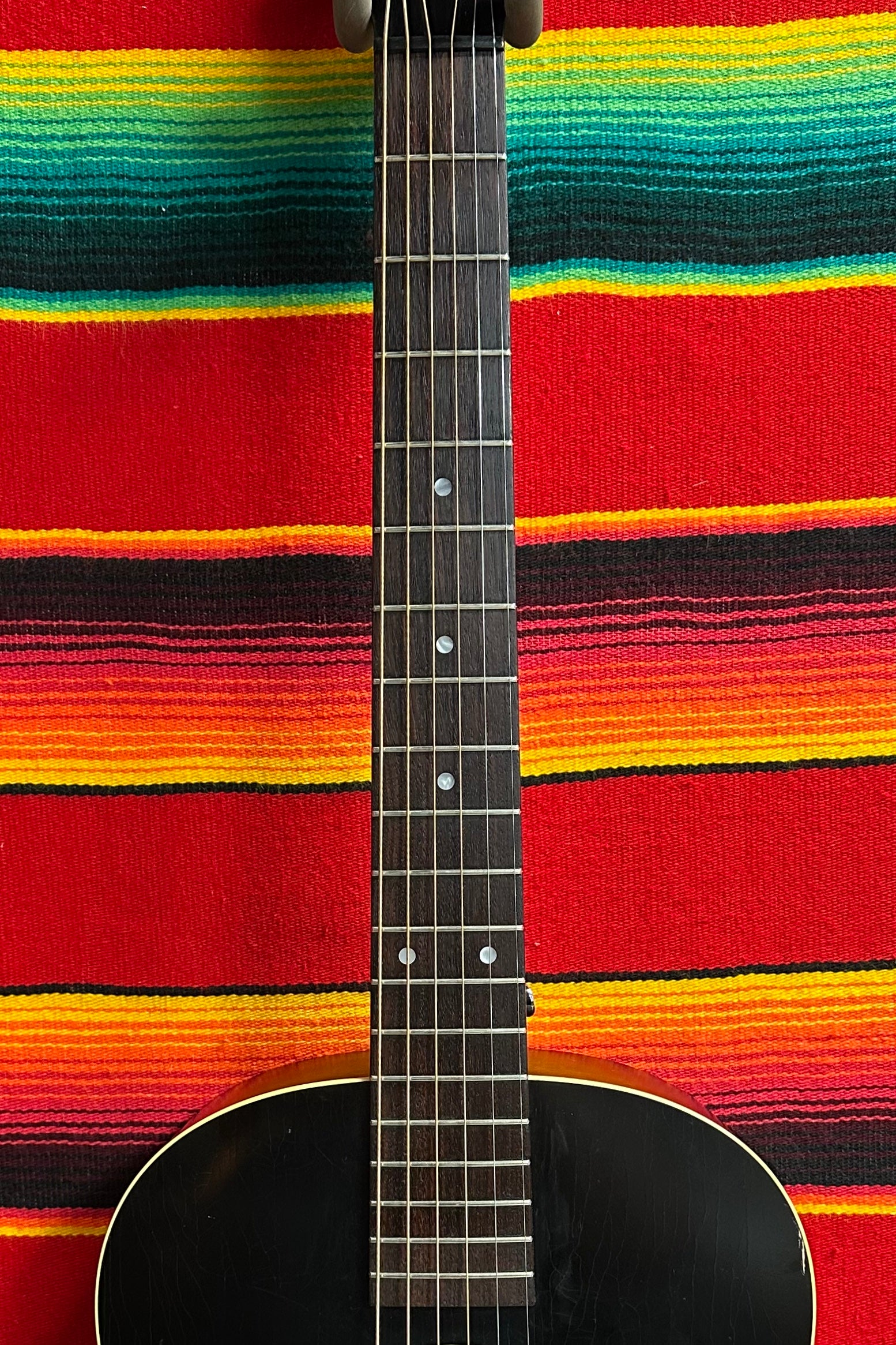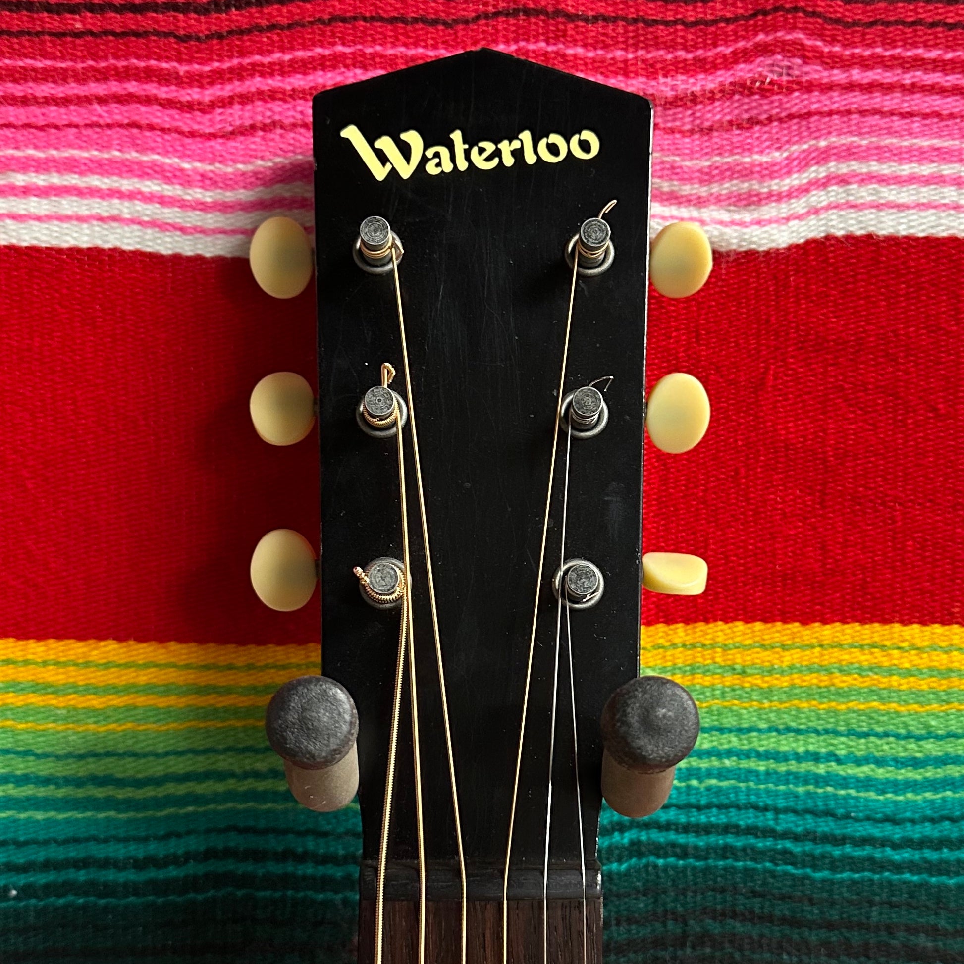 2018-19 Waterloo WL-14XTR in Aged Jet Black. Solid Spruce Top with Ivoroid Binding and X-Bracing. Solid Mahogany Back and Sides. Solid Mahogany Neck with Prominent V Profile. Unbound Indian Rosewood Fretboard with Acrylic Dot Inlays. 1.75" Ebony Nut. 12" Fretboard Radius. 24 7/8" Scale Length. Ebony Straight Bridge with Drop-in Bone Saddle. 2 3/8" String Spacing. Added L.R. Baggs M1 Active Pickup. Comes with OHSC